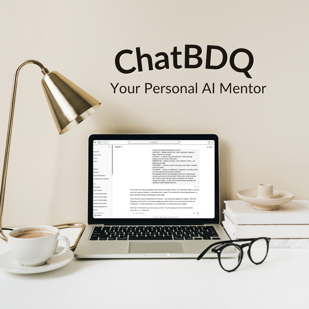ChatBDQ is your personal AI mentor, available 24/7 to guide you through decisions, mindset shifts, and strategy questions in real time.